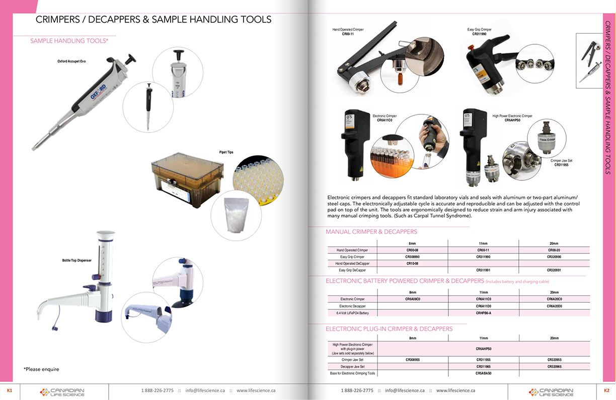 Manual crimper for 8, 11 and 20mm crimp caps. Electronic Crimper Tool for 8, 11 and 20mm crimp caps.